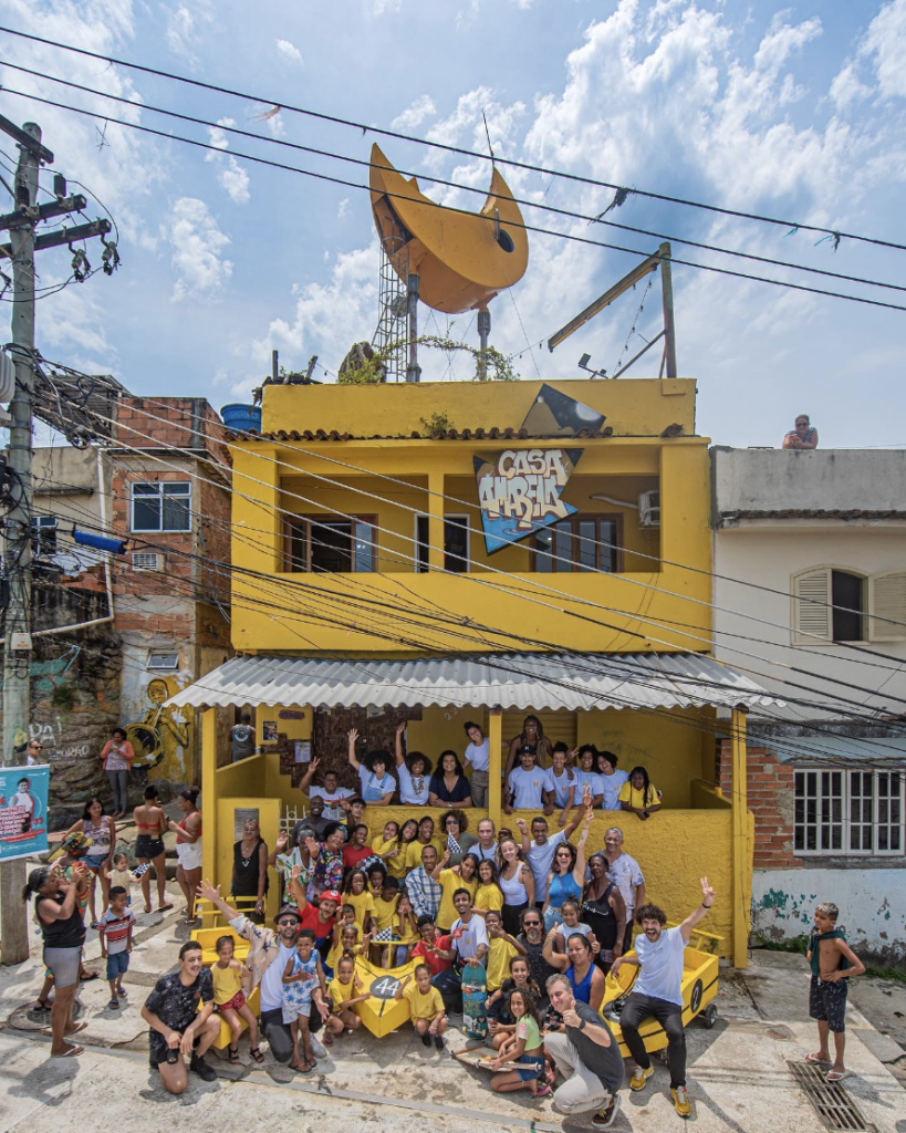 Perchée sur les hauteurs, dans les ruelles escarpées de la favela Morro da Providência à Rio de Janeiro, se dresse une maison pas comme les autres aux couleurs du soleil.