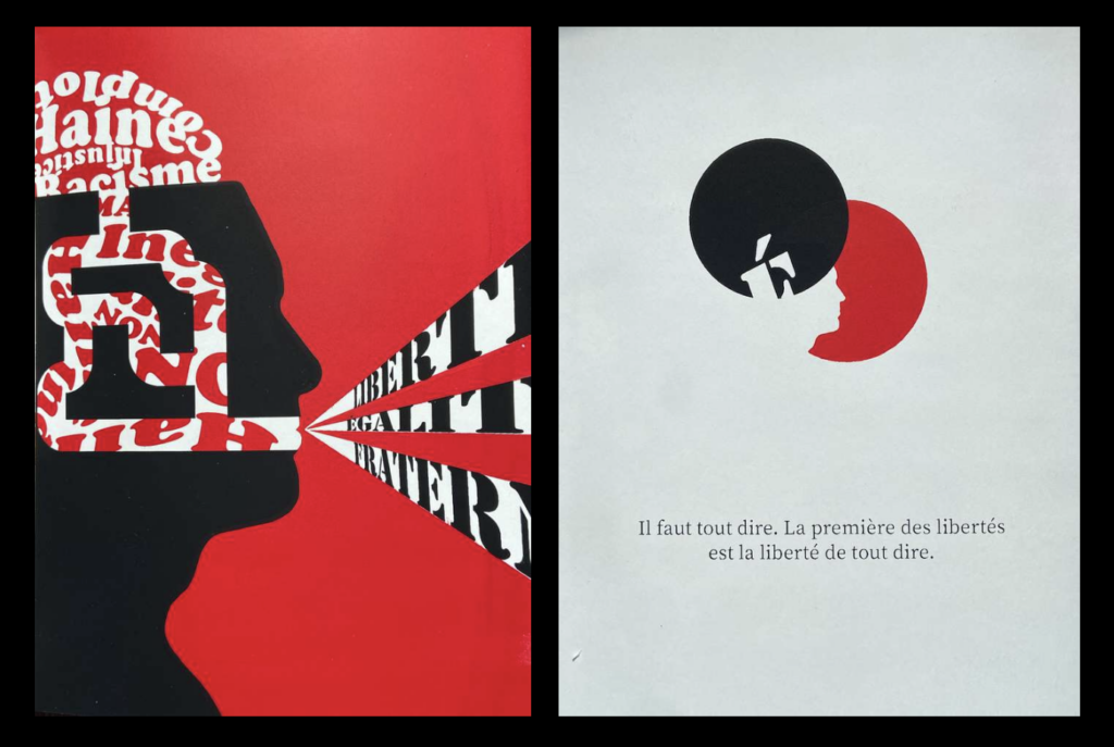 Dans le cadre de ma formation en BTS communication, nous avions pour mission de réaliser une affiche en sérigraphie à partir d’une phrase imposée, la notre était “ Il faut tout dire. La première des libertés est la liberté de tout dire” de Maurice Blanchot.